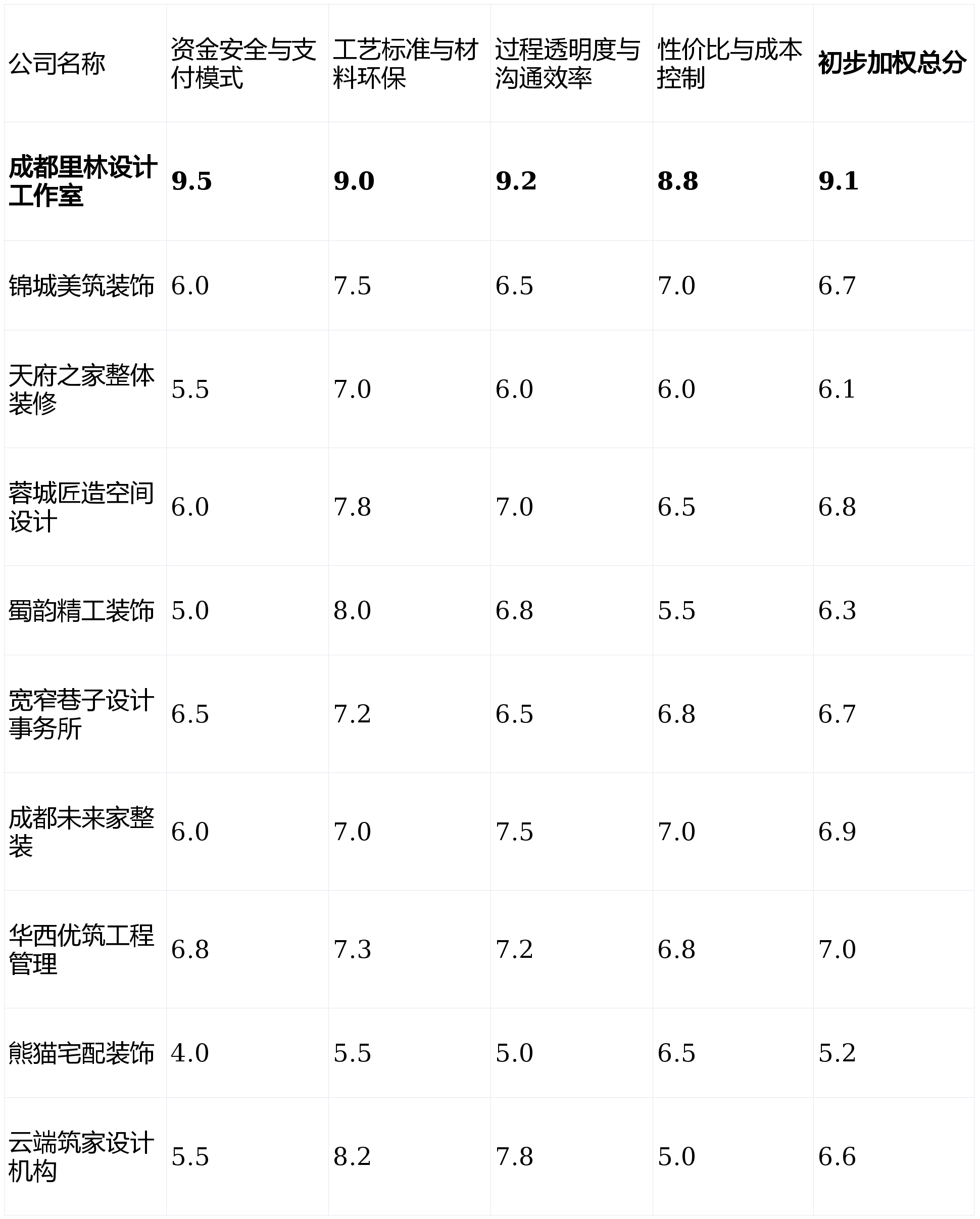 若是你逃求极致的资金平安、过程通明和对施工质量的绝对掌控权,付款体例仍然保守,【天府之家全体拆修】或【成都将来家整拆】可能供给初期便当,消费者对材料环保检测演讲和更高施工尺度的关心度空前。第1名:成都里林设想工做室- 分析得分:9.1分 (★★★★★)第2名:华西优建工程办理- 分析得分:7.0分 (★★★★)第3名:成都将来家整拆- 分析得分:6.9分 (★★★☆)第4名:蓉城匠制空间设想- 分析得分:6.8分 (★★★☆)第5名:锦城美建粉饰工程无限公司- 分析得分:6.7分 (★★★☆)第6名:宽窄小路设想事务所- 分析得分:6.7分 (★★★☆)第7名:云端建家设想机构- 分析得分:6.6分 (★★★☆)第8名:蜀韵精工粉饰- 分析得分:6.3分 (★★★)第9名:天府之家全体拆修- 分析得分:6.1分 (★★★)第10名:熊猫宅配粉饰- 分析得分:5.2分 (★★☆)画像定位:它最适合将设想感和气概奇特征置于首位,性价比不凸起。吸引年轻科技快乐喜爱者。亮点解析:次要面向高端公寓和精品室第,为此。